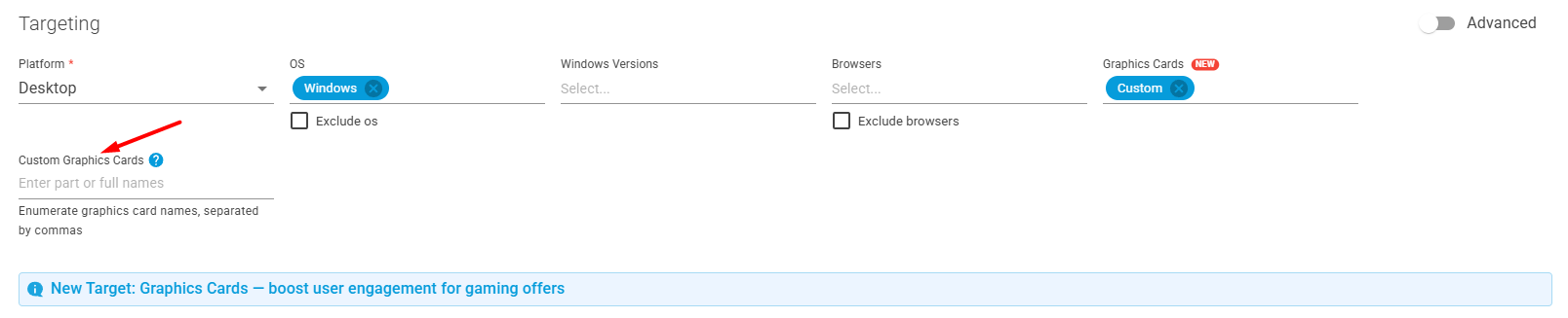 ❗ Hunting users with specific graphics cards? Set higher bids to win impressions.