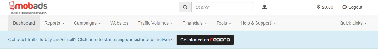 Mobads это платформа меинстрим трафика, в то время как Reporo имеет прежнее название и остается адалт эквивалентом в конгломерате.
