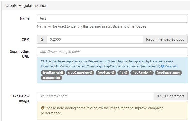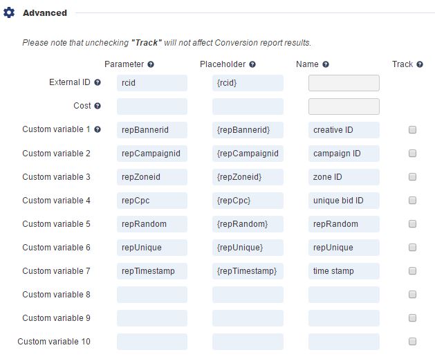 Как видите, в настройках есть несколько полезных токенов, которые вы можете передать в свой трекер, например campaign id, banner id, zone id и так далее.